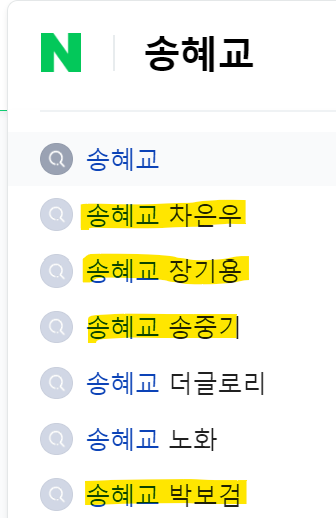 송혜교 연관검색어를 한번 찾아보았다.