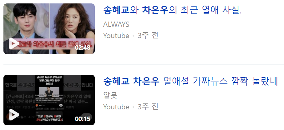 일단은 송혜교 차은우 연애설은 루머다.