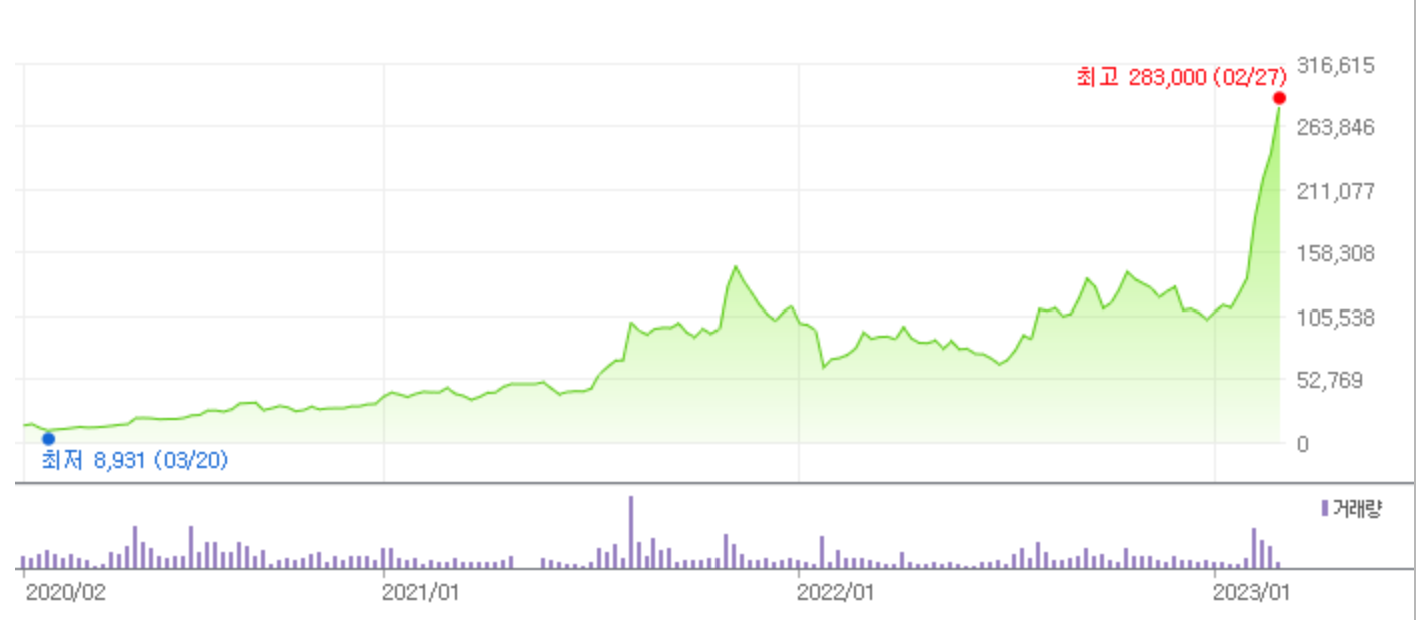 에코프로 주식 무려 28배나 올랐네요.