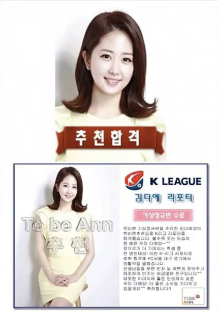 K리그 리포터라고 하고 아나운서 지망생이라고 많이 말하던데 아직 정식적으로 계약이 된 곳은 없으신듯