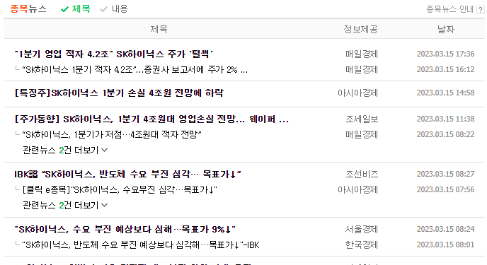 아직은 SK하이닉스 주식에 대해서는 부정적인 기사와 의견들이 많습니다.