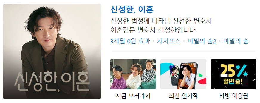 신성한 이혼이라는 옵니버스식 드라마 첫화에서 나오는데요. 첫화 두번째 정도 나오고 끝날 줄 알았는데 한혜진도 주연이네요. 오랜만에 조승우도 보이구요.