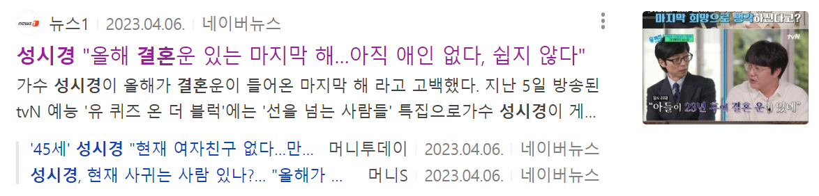 그리고 역시 성시경 결혼 관련 이야기도 나왔었나 보다.