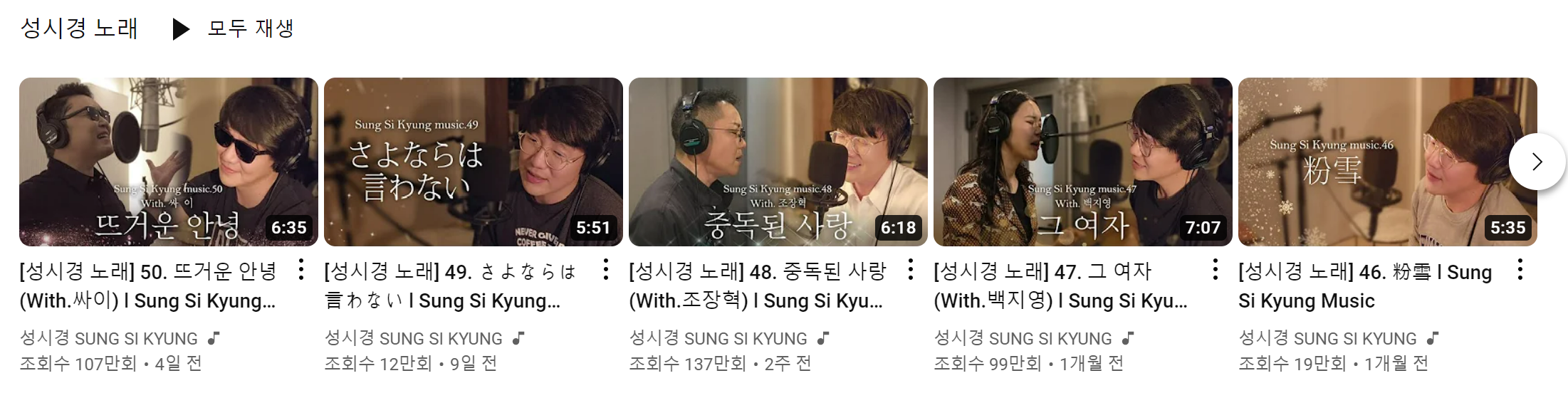 금요일 밤 유튜브 사냥을 하다가 우연히 피드에 표시된 성시경 노래들
