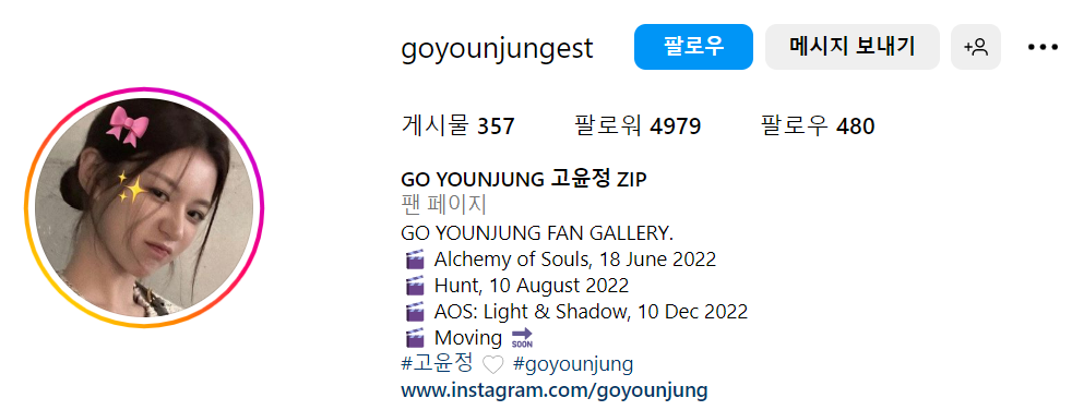 아래 고윤정 인스타는 고윤정이 하는 건 아닌 것 같고, 팬이 하는 것 같다.