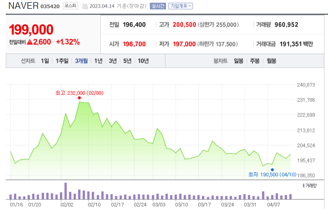 그다음 네이버 한 1000만원 재미로 넣어볼까?