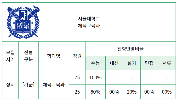 아래는 2022 서울대 체대 입사정보,