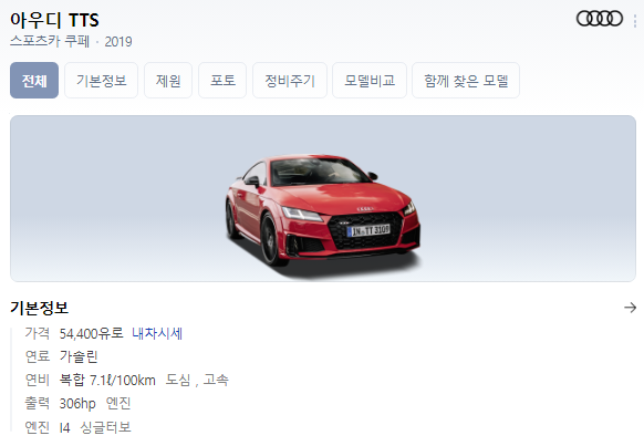 환승연애2 현규 차 아우디 TTS 가격은 54,400유로