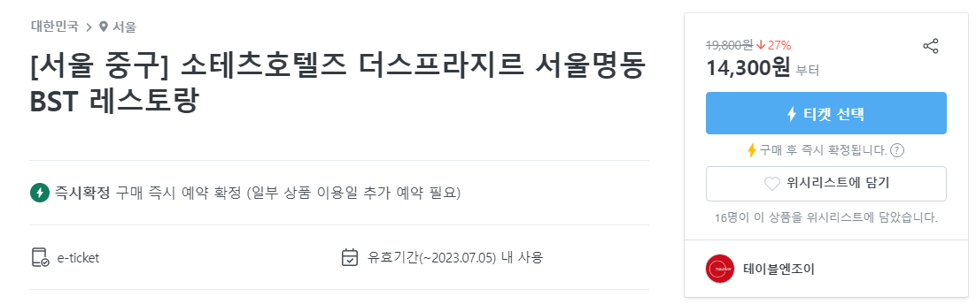 소테츠호텔즈 더스프라지르 서울명동 BST 레스토랑 가격도 특이한 점이