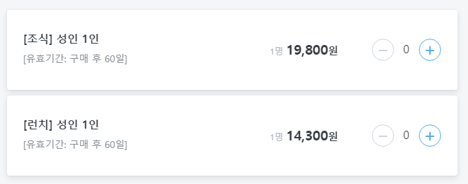 그냥 런치, 조식가격 모두 19,800원으로 동일하다.