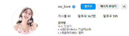 강아랑 기상캐스터 인스타(@wx_love)는 아래입니다.