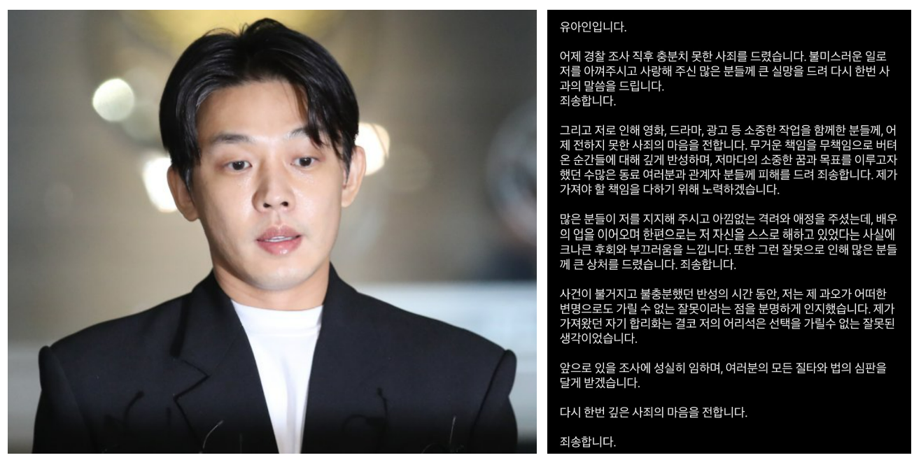 그래도 유아인 인스타에 입장문도 남겼었군요.