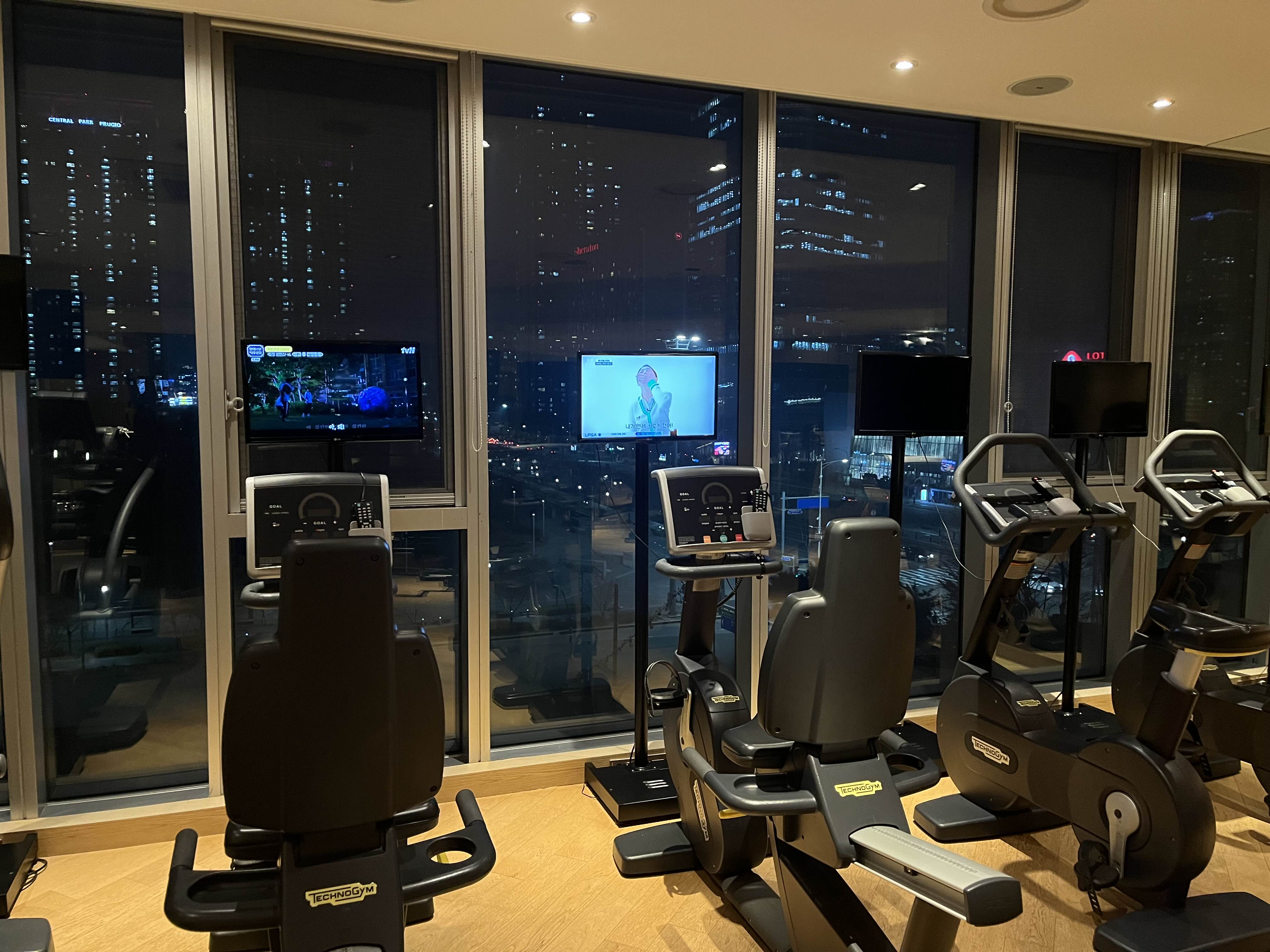 오라카이 송도파크 호텔 헬스장은 특히나 야경이 예뻤습니다. 인천 도시뷰 야경을 제대로 즐길 수 있어요.