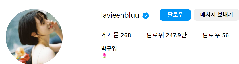 자 그럼 셀러브리티 박규영 인스타(@lavieenbluu)를 살펴볼게요.