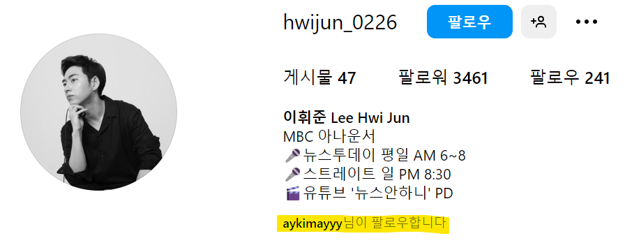 이휘준 아나운서 인스타는 아래 링크걸어둡니다.