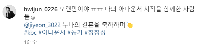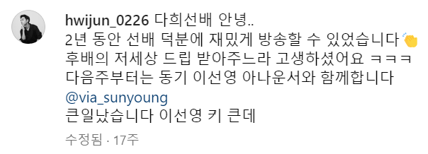 (이 내용은 아래 이휘준 아나운서 인스타 글 캡처 참고)
