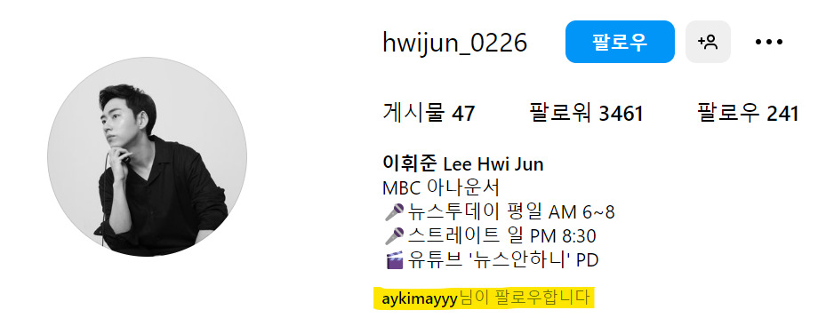 몬가 이휘준 아나운서 인스타(@hwijun_0226)를 보고 있으면