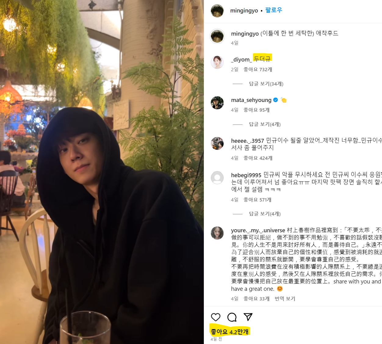 그나저나 신민규 스토리에 올라간 김지영... ㅎㅎㅎ