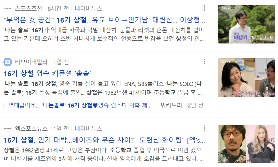 | 나는 솔로 16기 영철 인스타 및 이런저런 이야기 (1) | 2023.09.03 |