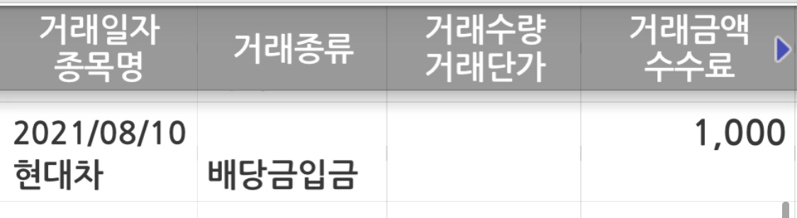 현대차 배당금은 한주당 1000원 10주를 가지고 있는 필자는 만원 들어왔고 최근 영웅문으로 부터 한주 더 샀었는데(서로 다른 증권사로 투자중)