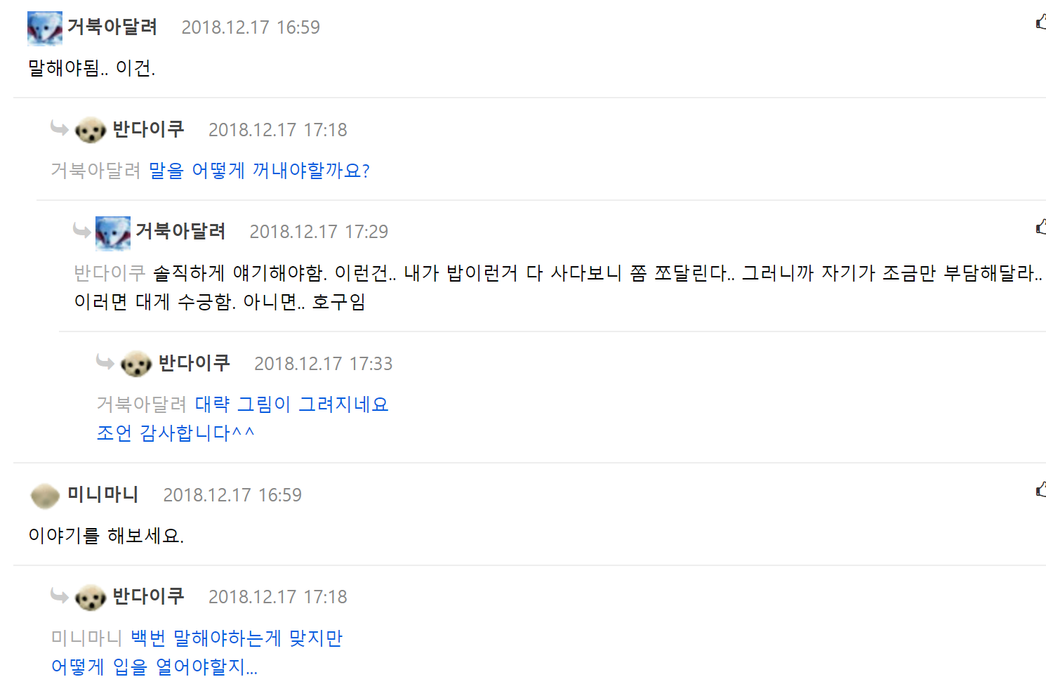 필자의 경우에는 대 놓고 걍 이야기한다.