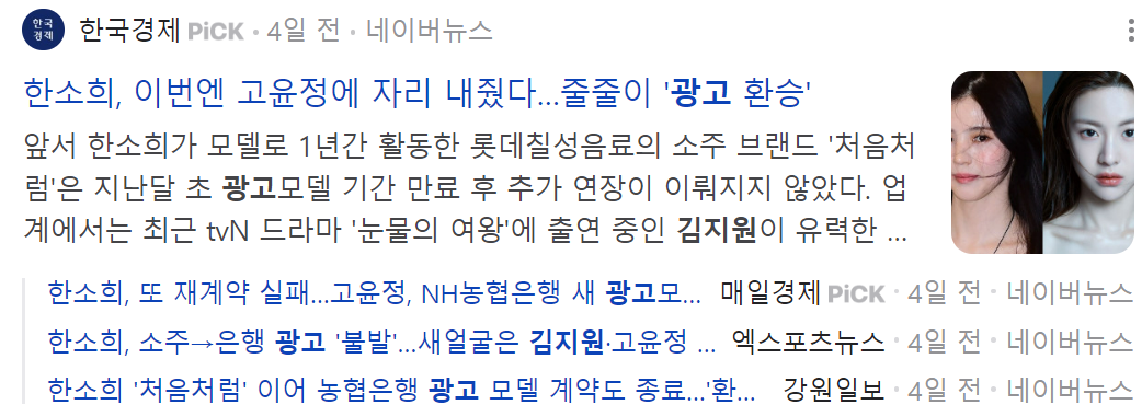 한소희 광고 계약이 줄줄이 만료되는 이유