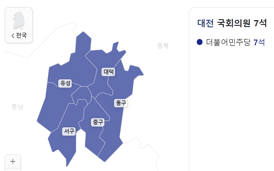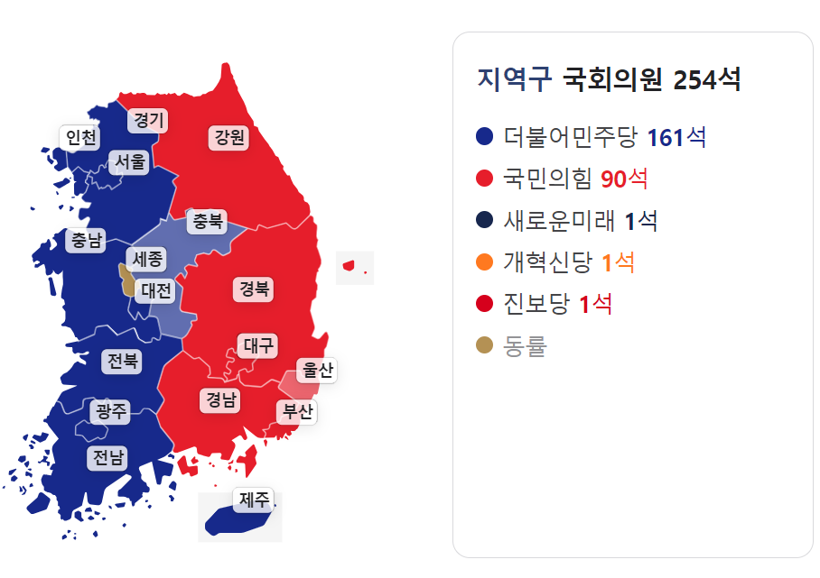 광주 대전 전북 전남은 또 완전 파란색이다.