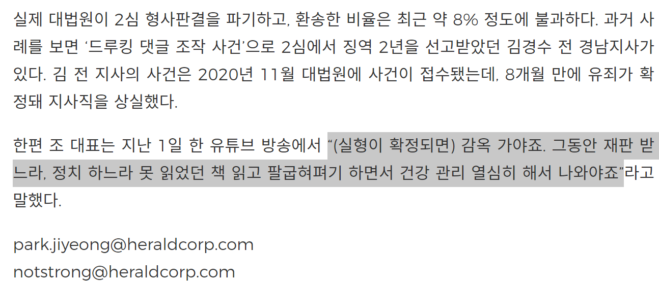 실형 확정되면 감옥가서 책 읽고, 팔굽혀펴기하고 건강 관리해서 나오겠다는...