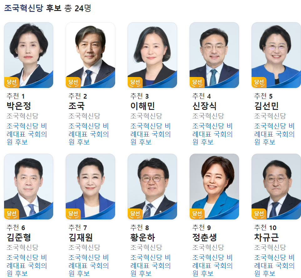 조국혁신당 총 24명 중 절반이 당선이 되었다.