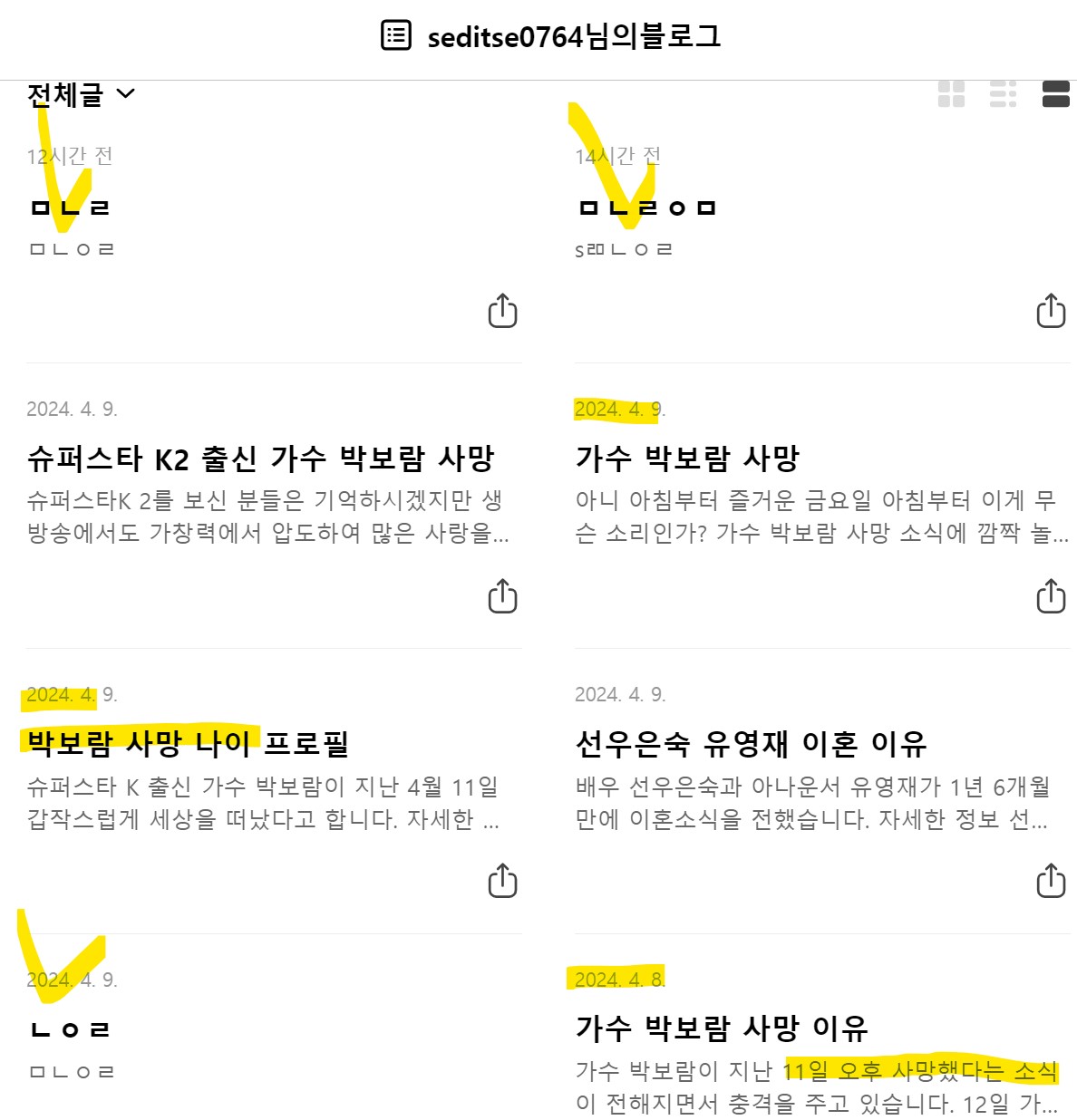 전지전능한 신인가? 4.9일에 박보람 사망 소식을 어떻게 쓸 수가 있지?