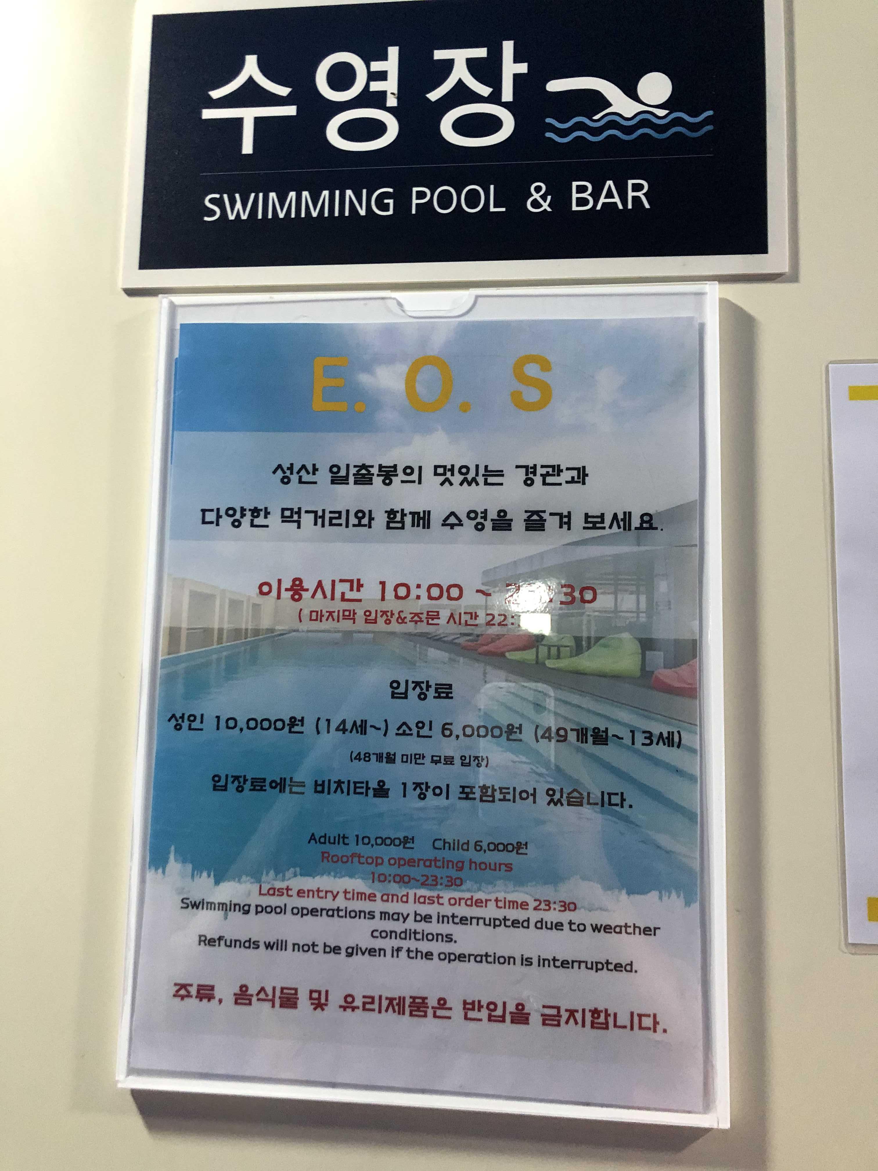 제주 성산 골든튤립 호텔을 픽한 주요 이유 중 하나는 루프탑 수영장인데 시국이 시국이니 만큼 시시각각 수영장 운영 시간 방침은 변경되니 꼭 호텔 데스크 문의하고 예약하도록 하자. 제주도 코로나 3단계일때에는 사용은 가능했었다. 제주 성산 골든튤립 호텔 루프탑 수영장은 근데 그렇게 감동적이지는 못함
