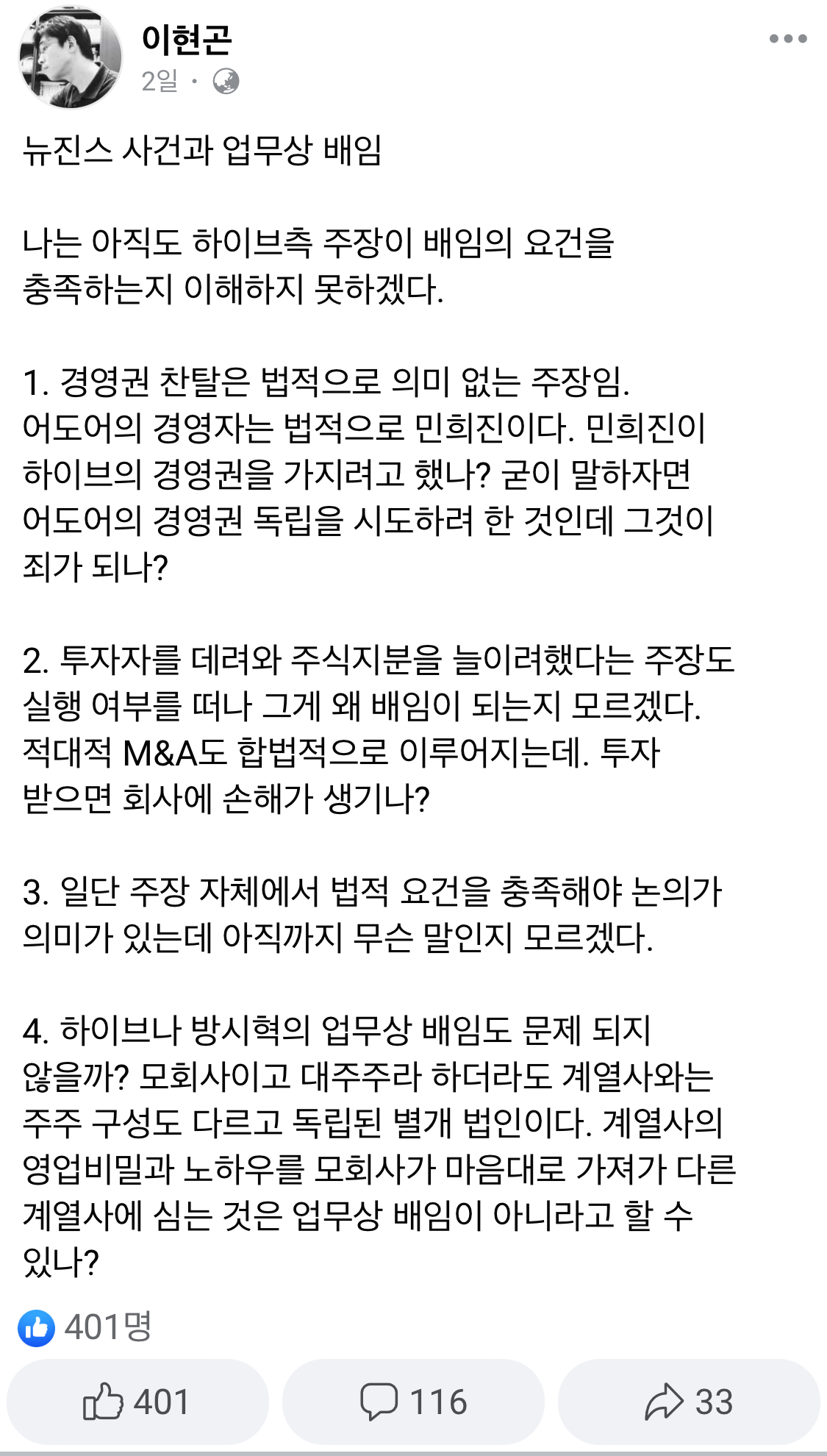 이현곤 변호사 페북 글이 지워질지는 모르겠지만