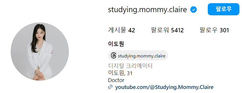의대생 이도원 유튜브(@Studying.Mommy.Claire) 도 아래 클릭하면 바로 연결됩니다.