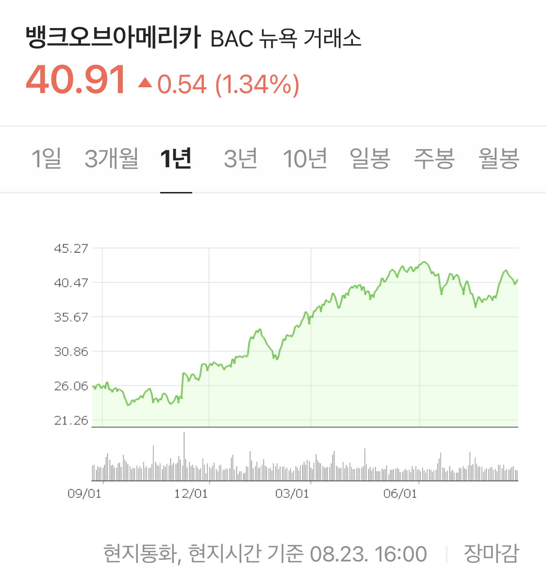 하 오늘도 길이 길어졌네 뱅크오브어메리카 주식도