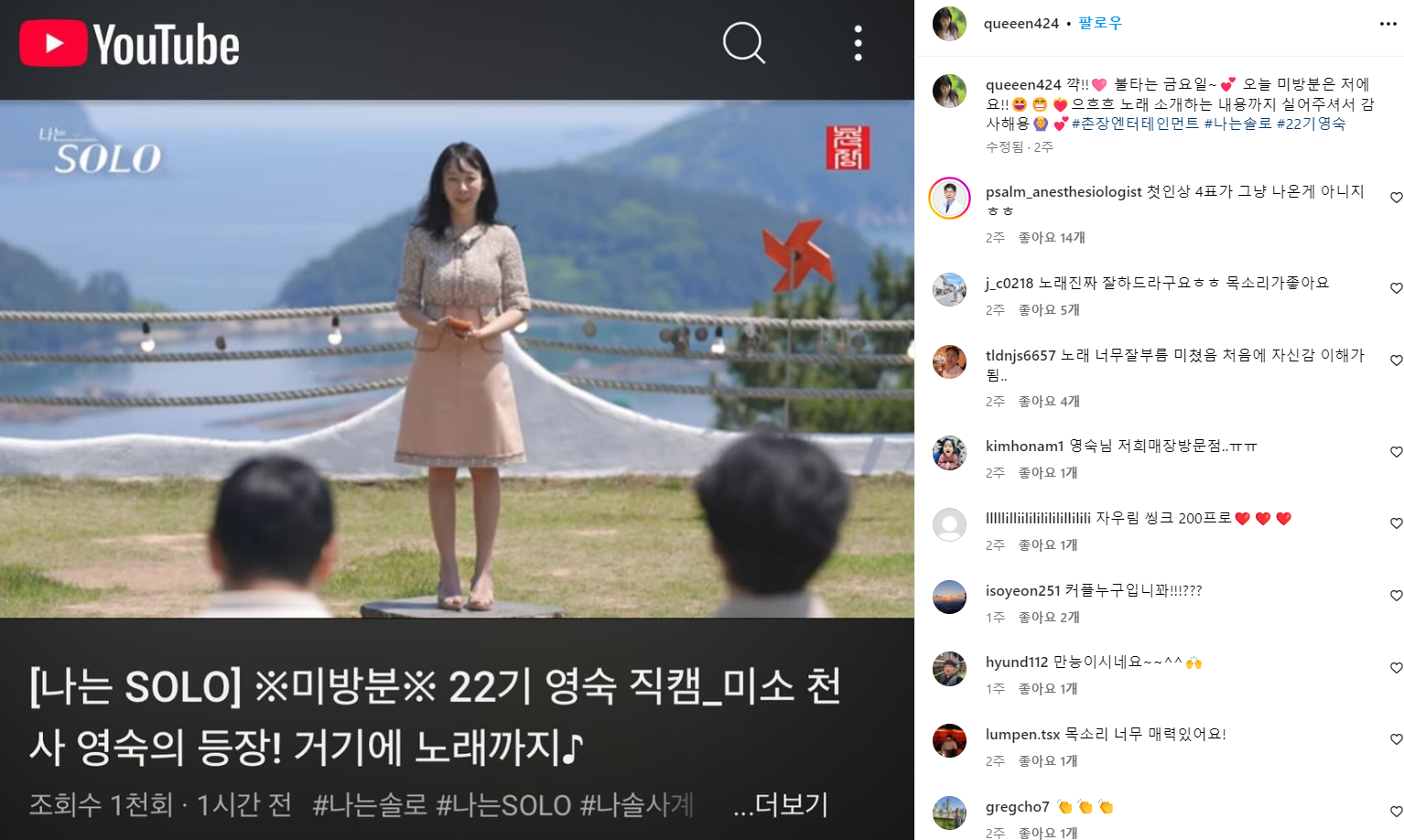 나는 솔로 22기 영숙 인스타(@ queeen424)