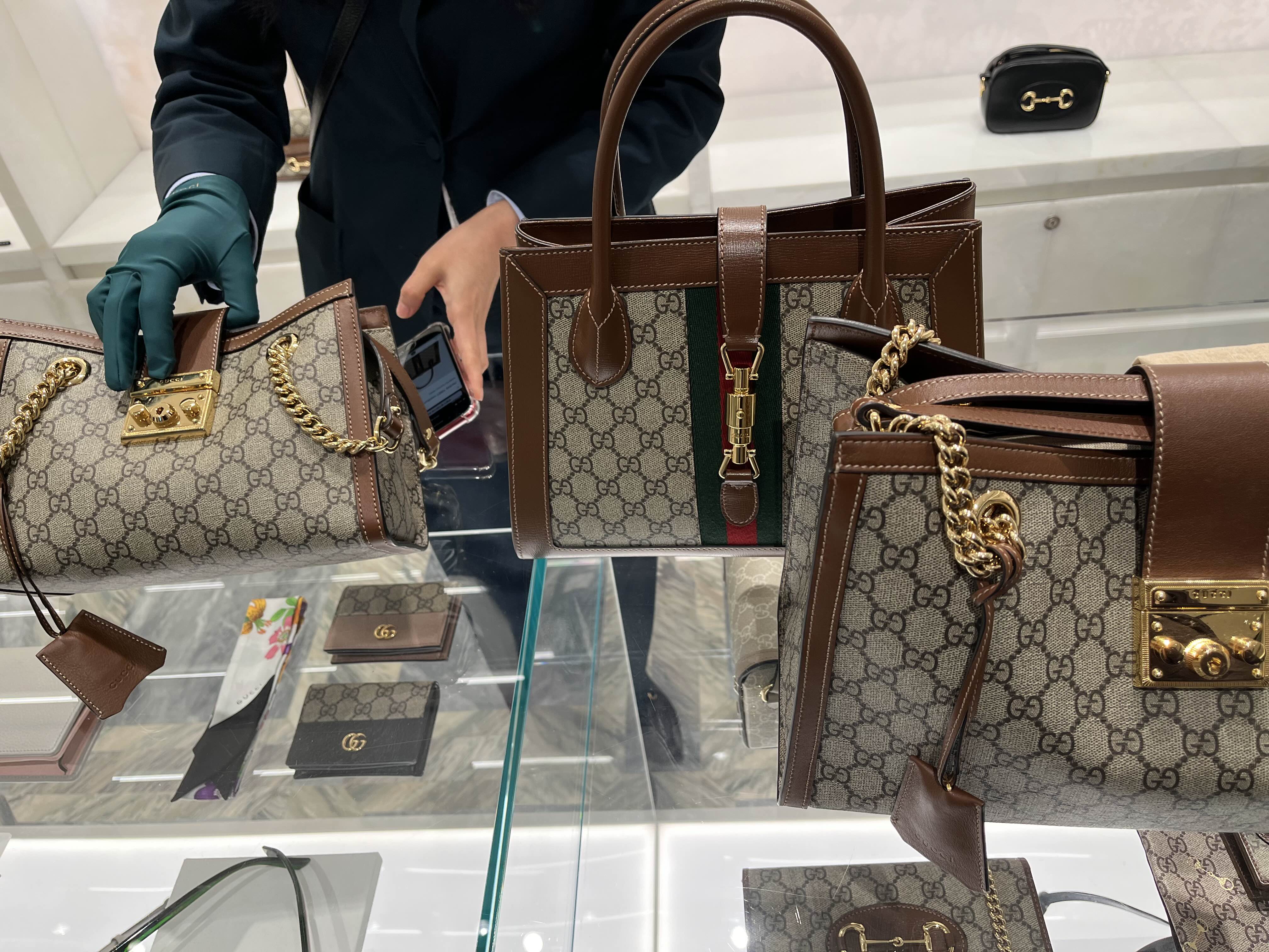 직원분이 들고 있는 구찌 가방은 270만원, 중간 구찌는 310만원입니다.