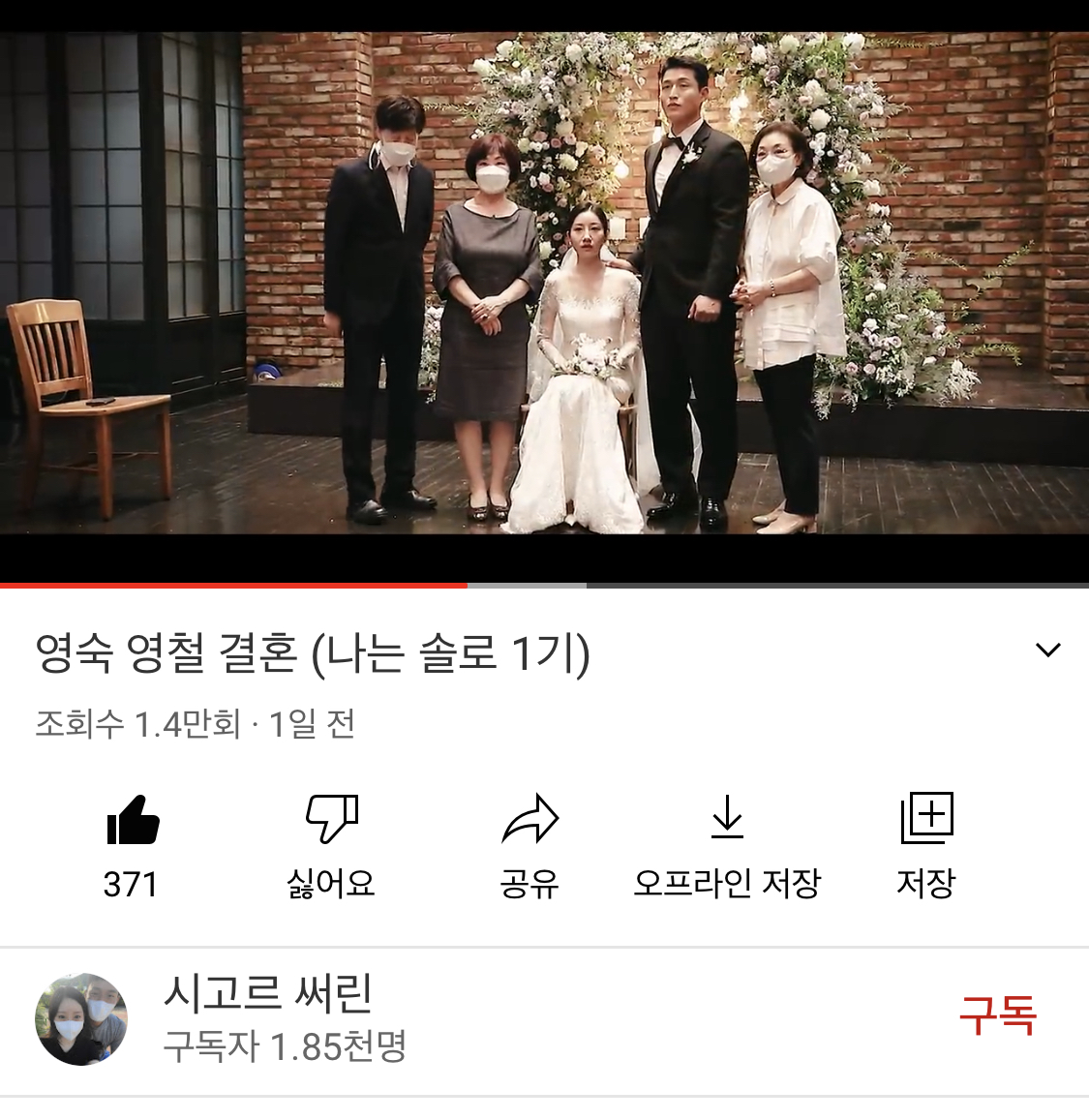 나는 솔로 영철 영숙 결혼, 웨딩 영상은 유튜브에서 쉽게 찾으실 수 있고 시간나면 보시길