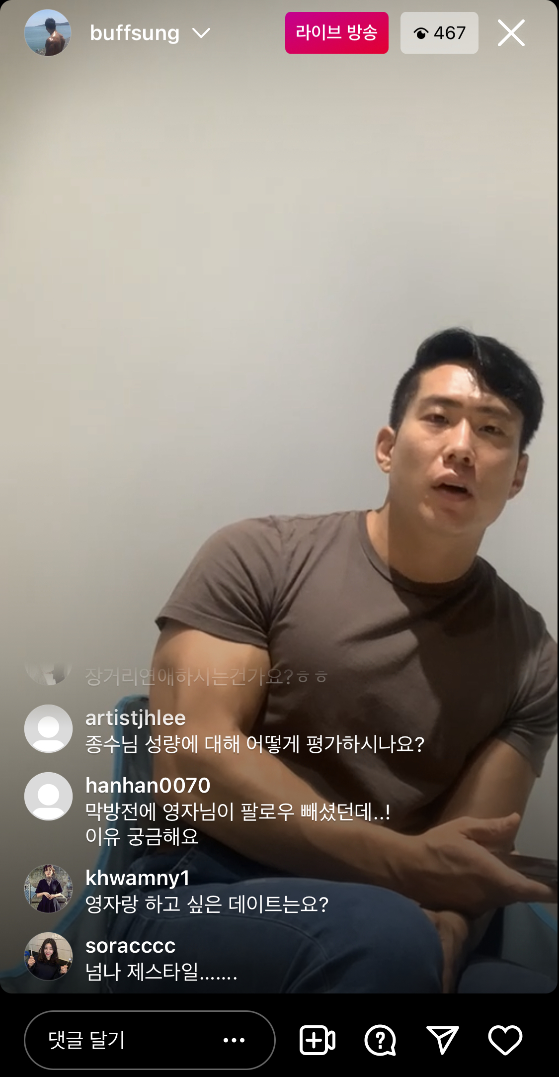 나는 솔로 영수님이 인스타 유튜브 엄청 열심히 하는 것 같고 지금도 방송 중이시네 ㅎㅎ