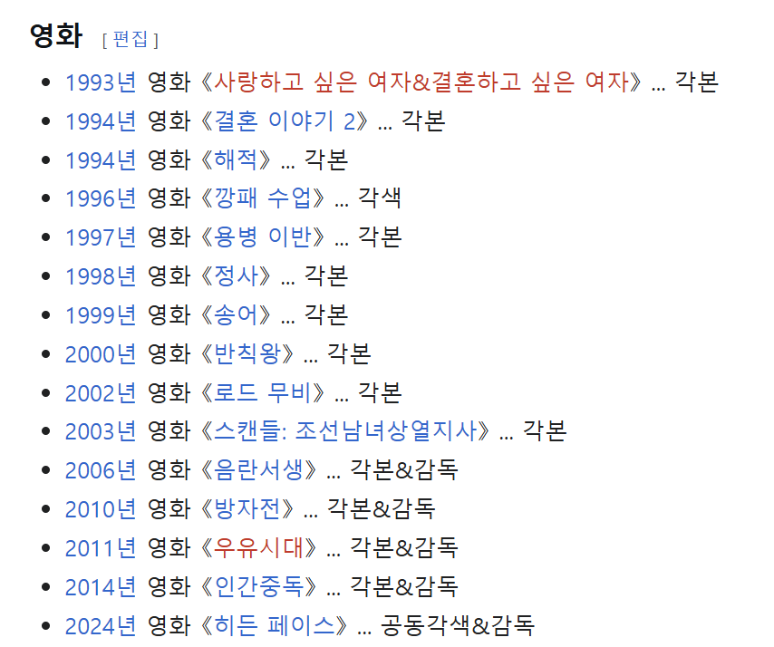 아래는 김대우 감독의 필모그래피