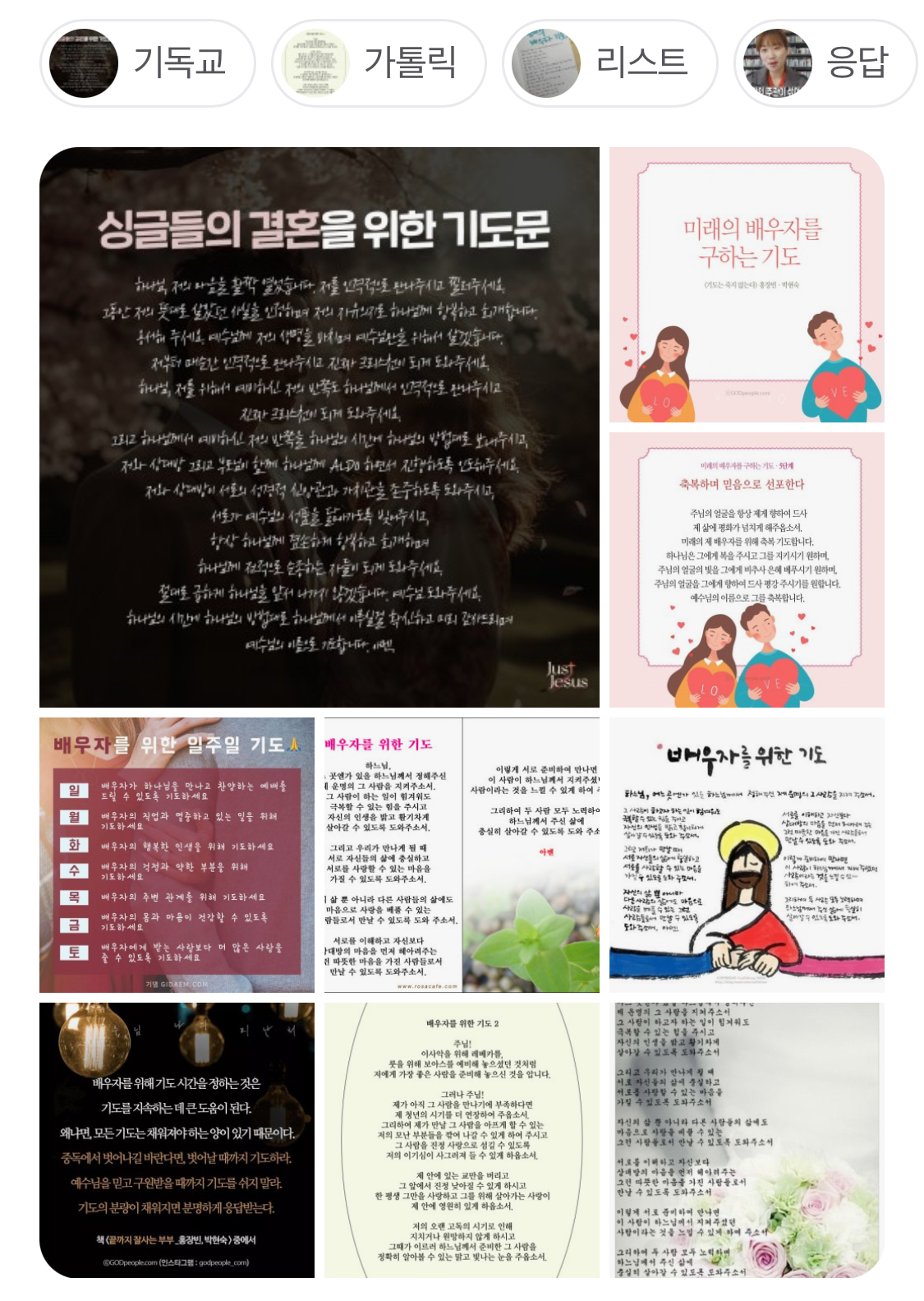 그리고 가장 거부감이 큰 기독교에서 주로 배우자 기도 이야기를 많이 한다. 당연히 그런걸 할 생각이 1도 없었는데 무조건 안 좋기만 한 것은 없구나 하고 느낀다.