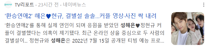 최근 환승연애 현규 성해은 결별설이 올라오고 있네요.