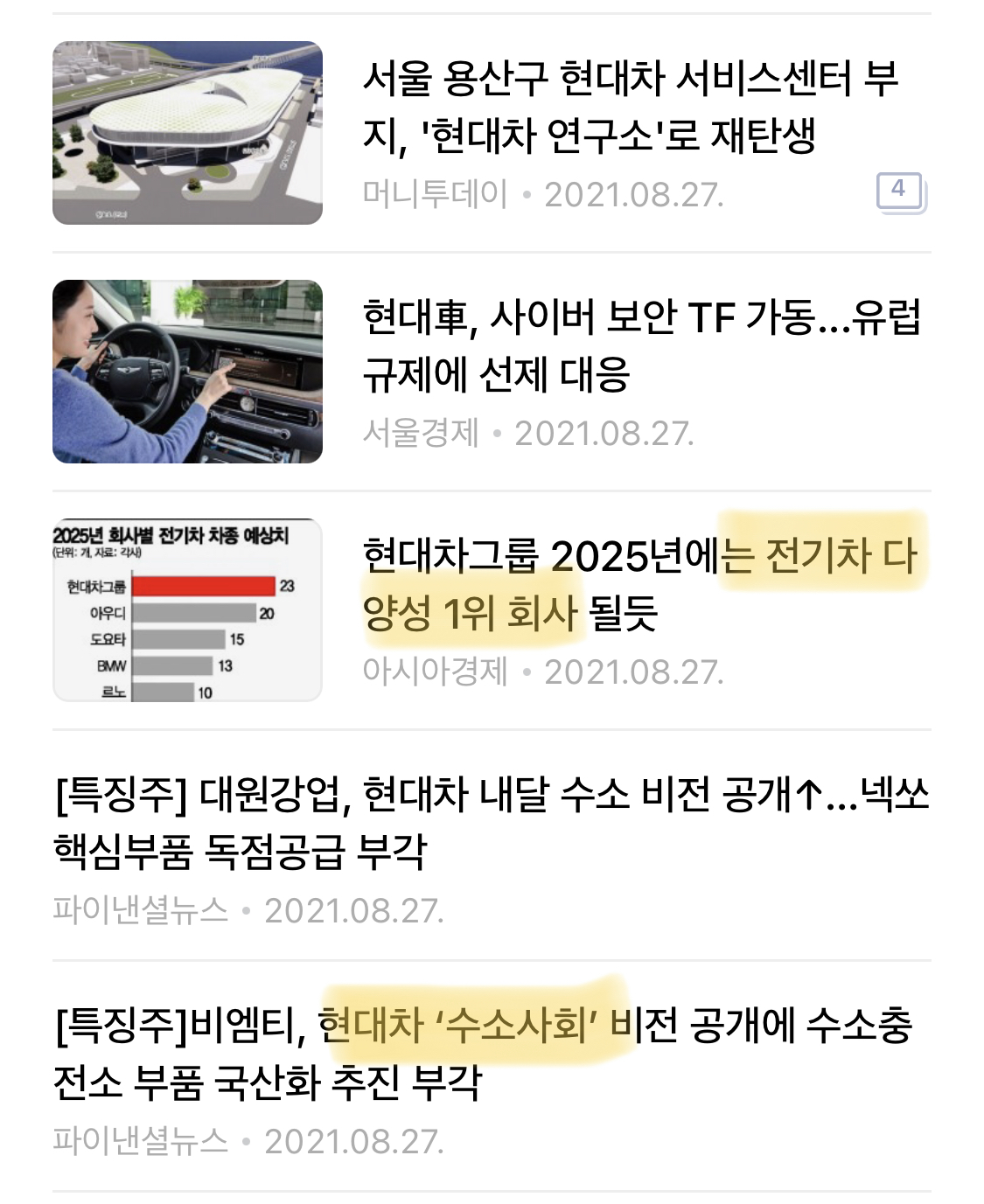 최근 현대차 이슈들 뉴스 기사들 보면,
