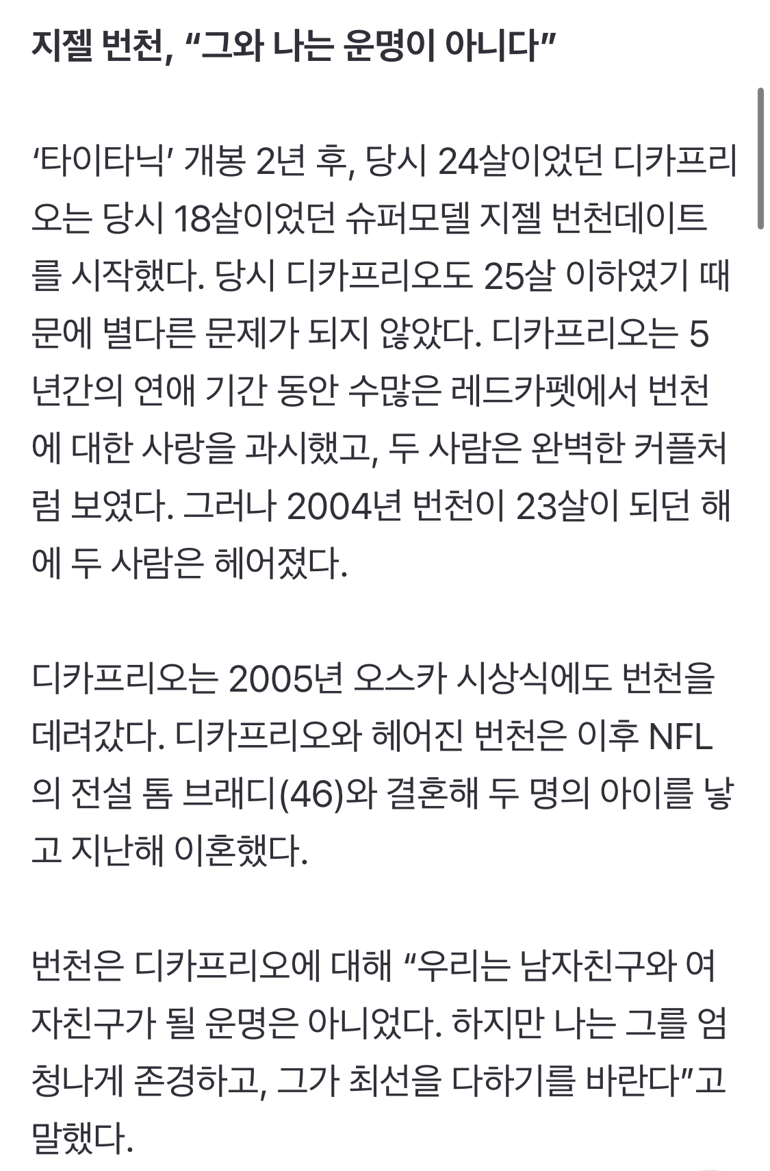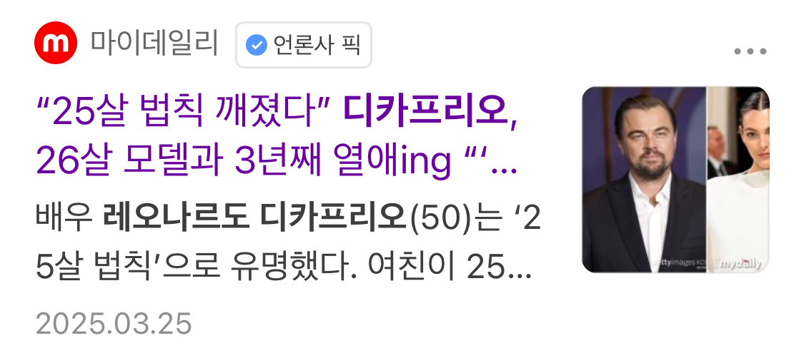 디카프리오 25세 법칙을 깬 현 여친(25.04)