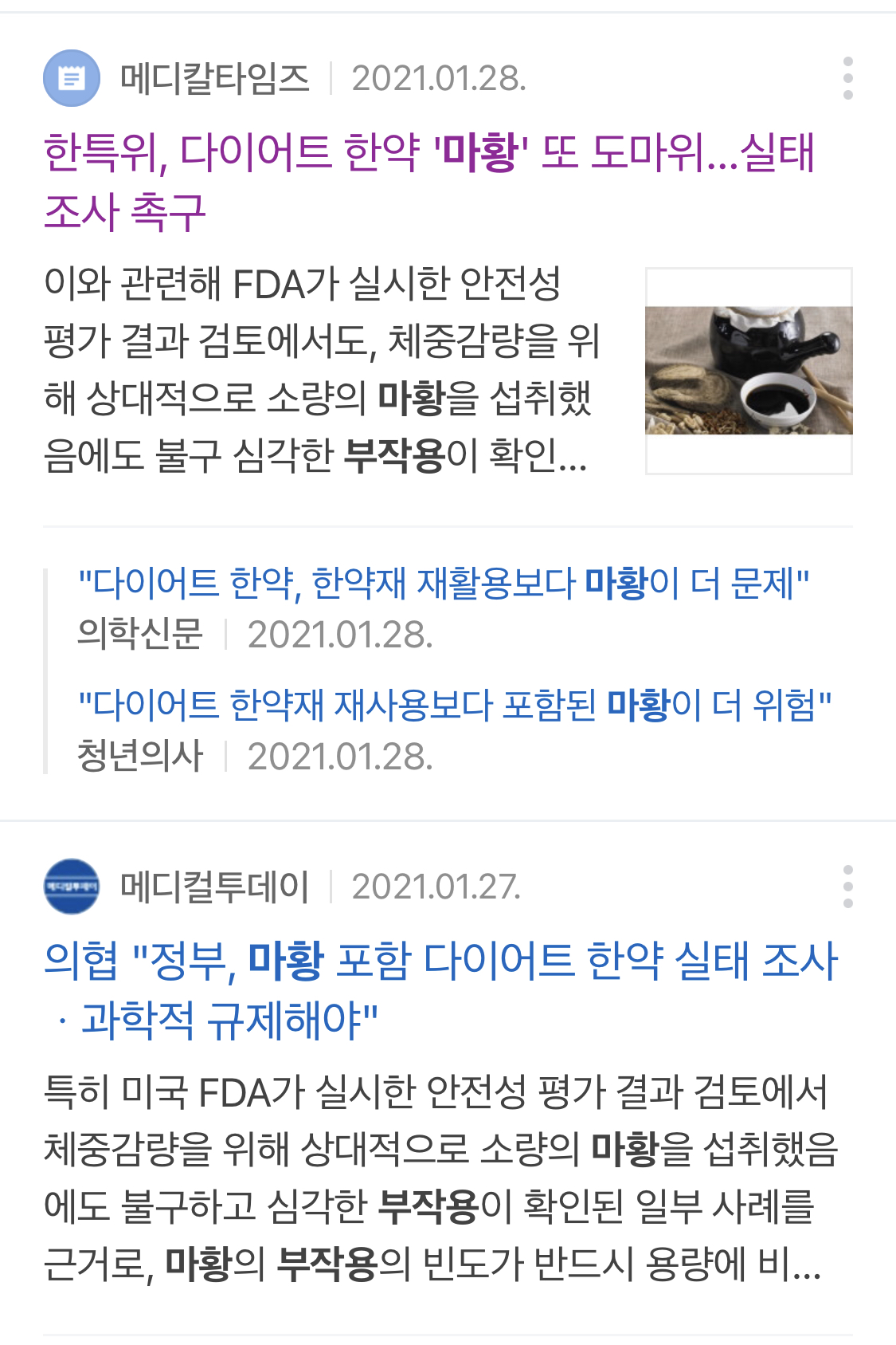 머 주 성분이 마황이라니깐 비슷하겠지만 사례는 다를 수 있으니… 이 제품 마황만으로는 문제가 없는데 체질에 따라 용량에 따라 문제가 발생할 수도 있어보이는데 필자는 확실히 먹고 나면 구토 어지러움증이 강해서 안 먹는 것이 좋을 것 같은 기분도 든다.
